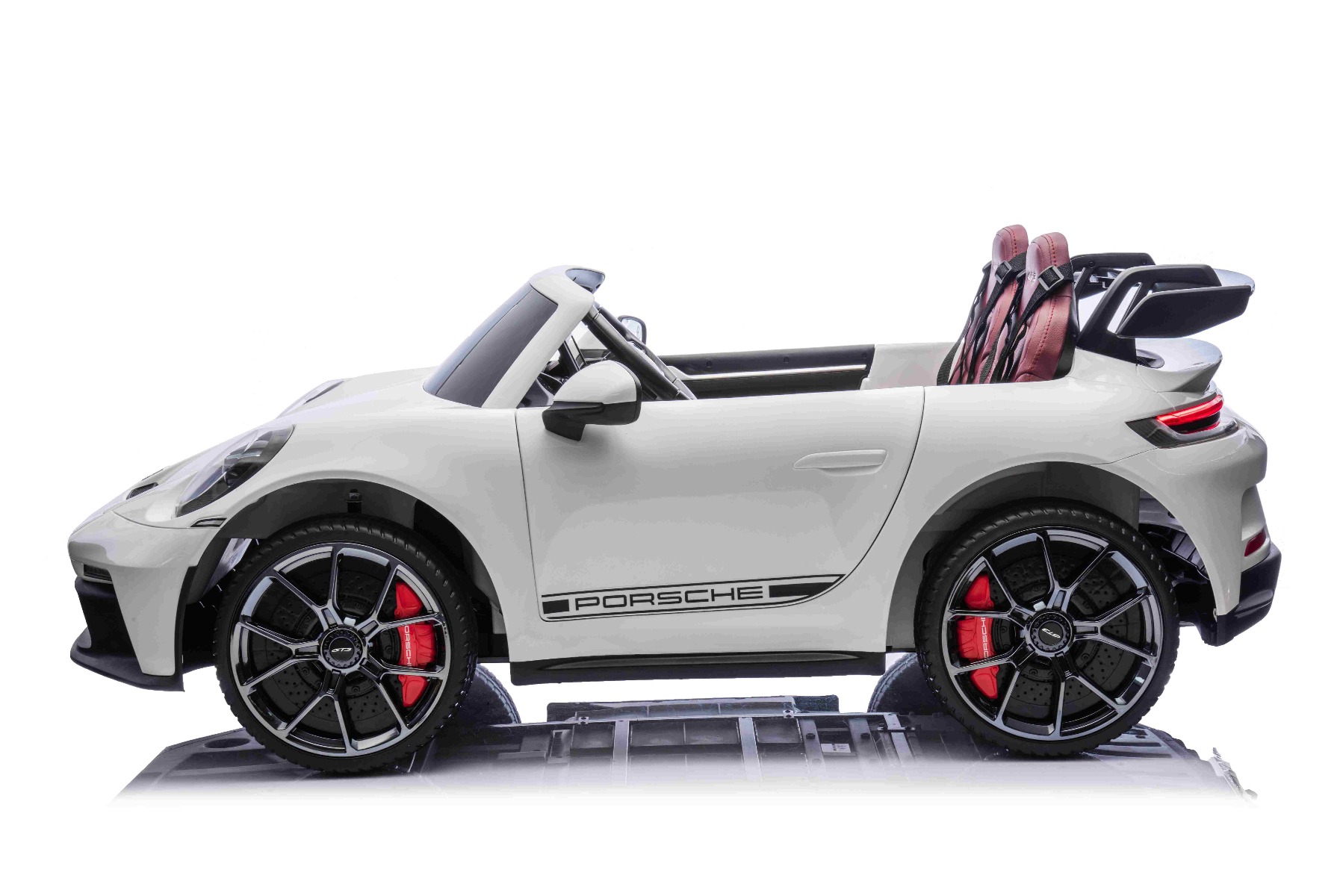 Električni avtomobilček Porsche 911 GT3 24V s pogonom 4x4, bel, dvosedežnik, daljinski upravljalnik 2,4 GHz, USB/AUX vhod, motorji 200 W, vzmetenje, litijeva baterija, LED luči spredaj in zadaj, ORIGINALNA registracija