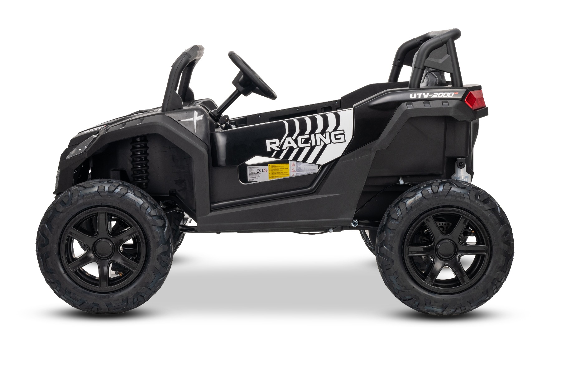 Električni avtomobilček UTV XXL 24V, črna, dvosedežni, motor z diferencialom, napihljiva gumijasta kolesa, vzmetene zadnje osi, kolutne zavore, oblazinjen sedež, nastavljiv volan, bluetooth, MP3 predvajalnik z USB/SD vhodom