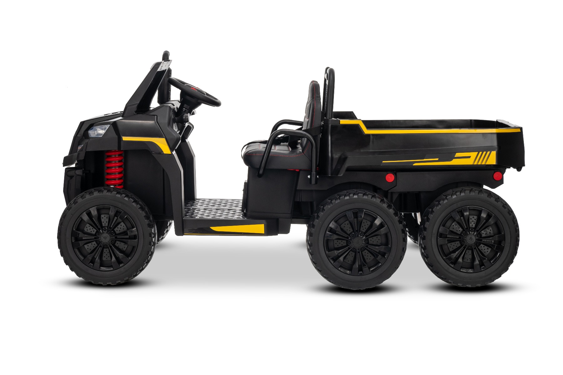 Kmečki električni avtomobilček RIDER 6X6 24V s štirikolesnim pogonom 4X 200W, dvosedežni, črne barve, litijeva baterija, EVA kolesa, dvojni sedež iz usnja, vzmetene osi, 2,4 GHz daljinski upravljalnik, MP3 predvajalnik z USB/AUX vhodom, Bluetooth