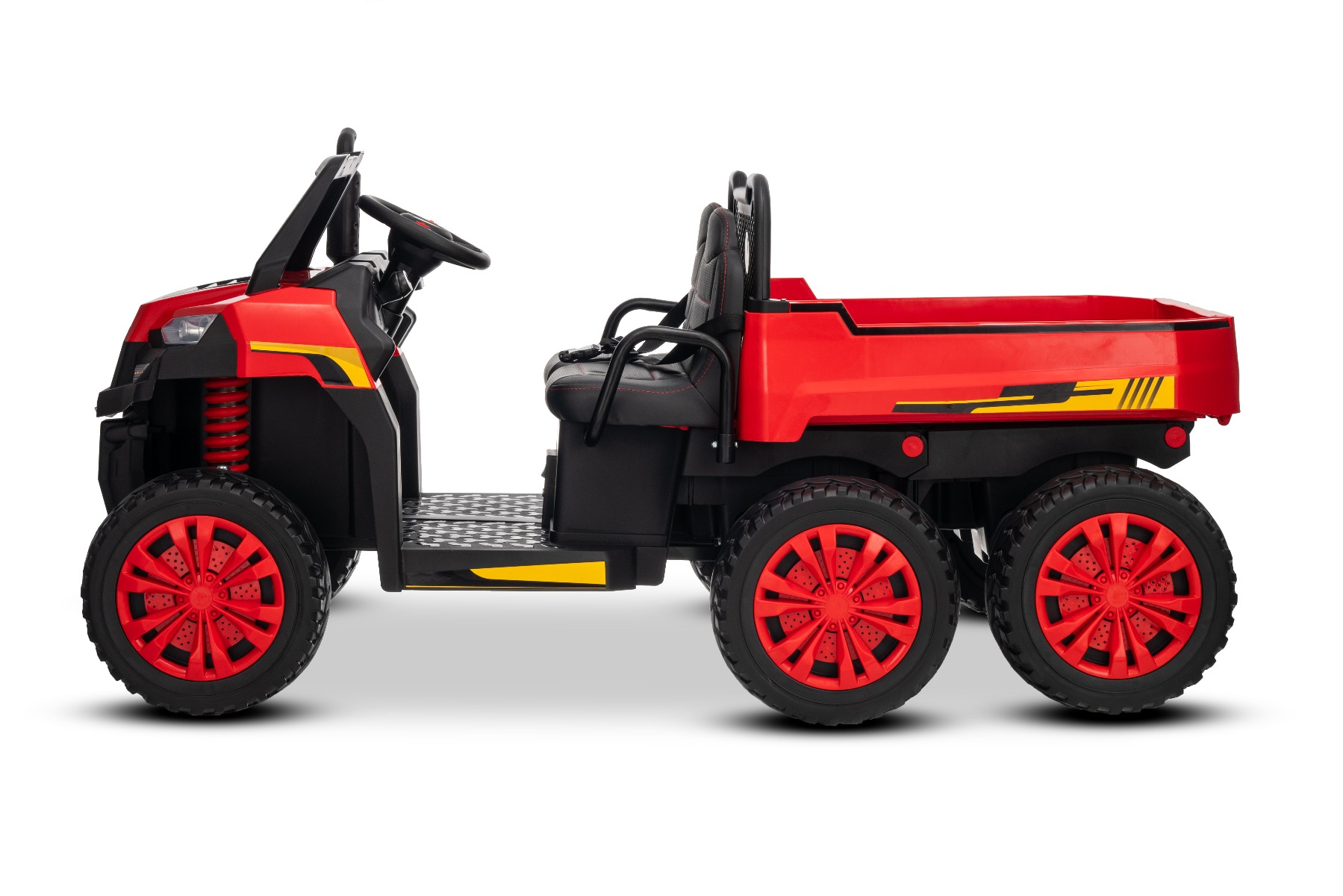 Kmečki električni avtomobilček RIDER 6X6 24V s štirikolesnim pogonom 4X 200W, dvosedežni, rdeč, litijeva baterija, EVA kolesa, dvojni sedež iz usnja, vzmetene osi, 2,4 GHz daljinski upravljalnik, MP3 predvajalnik z USB/AUX vhodom, Bluetooth